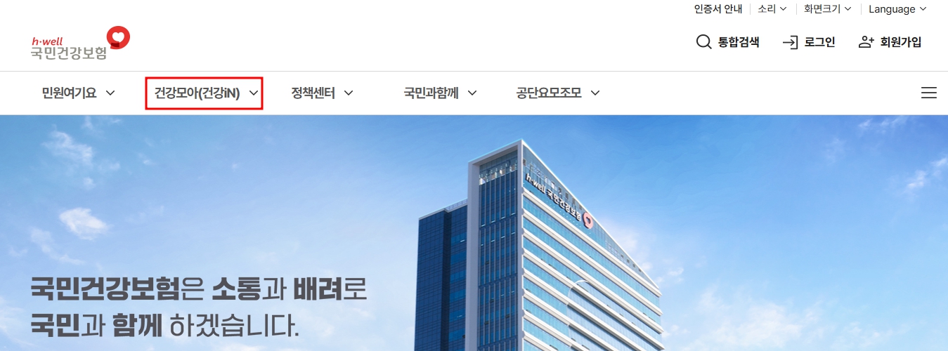 - 건강보험공단 홈페이지 접속